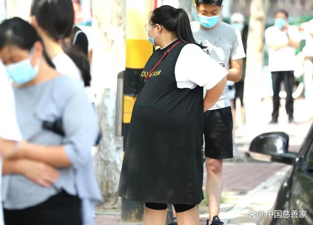 2021年8月,河南商丘,一位孕婦正在排隊(duì)等待第三輪核酸檢測。